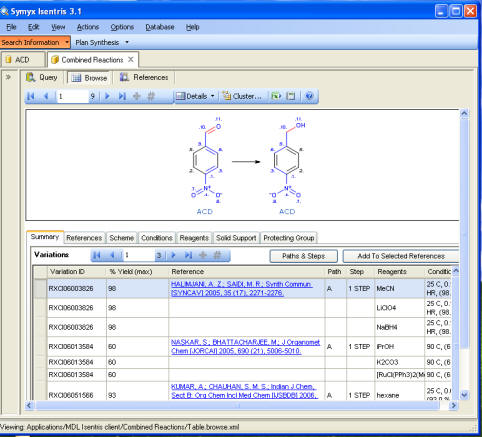 - SciFinder, CrossFire Beilstein, ChemInform, combined reaction databases in